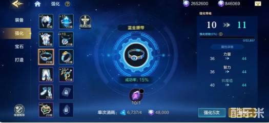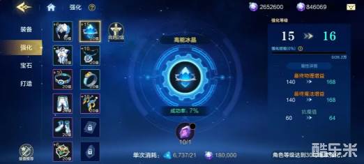 强化等级的规则必须要记住,等级越高,那么强化成功率也就越低。要是15之后还想要继续强化,那就要等角色达到30级之后才可以解锁。不过强化到十之后就会开启五连强化功能,批量操作的效率是比较高的,不需要一点点点击浪费时间。这里就有一个避坑点,强化超过10以上,每一次都会消耗大量的魔晶,而且系统不会提示会不会使用非绑定魔晶。在一键强化之后,就可以把非绑定的魔晶全部的清空,所以一定要选择手动去选择,避免血亏。幸运时使用的时机也很关键,这款道具在强化等级10级到24级时都可以使用,能够拥有翻倍的成功几率。